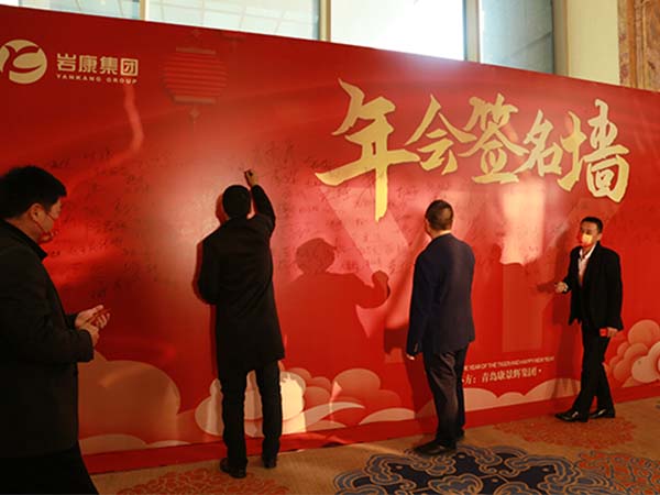 年會在主辦方青島康景輝科技集團的董事長夏和斌先生和巖康集團董事長夏和義先生的演講中開始,接下來就是各公司組織的文藝匯演以及抽獎環節,整場文藝匯演及抽獎便在這歡聲笑語中圓滿落幕,豐盛的飯菜也端上了桌,盛典迎來午宴環節。宴會期間,董事長夏和義先生親自為到場的所有員工發放紅包并送上了新年祝福,合影留念,現場氣氛迎來巔峰。